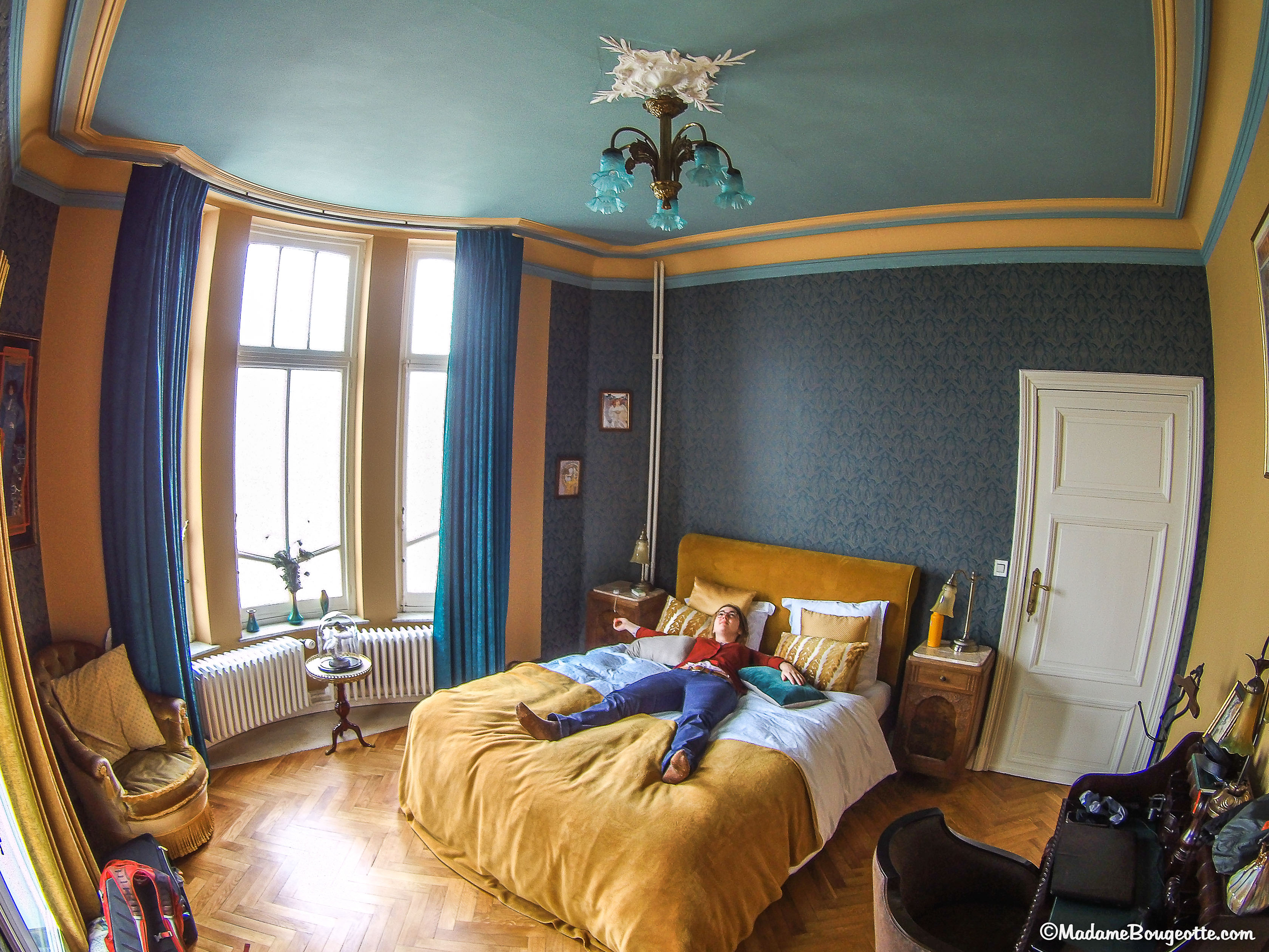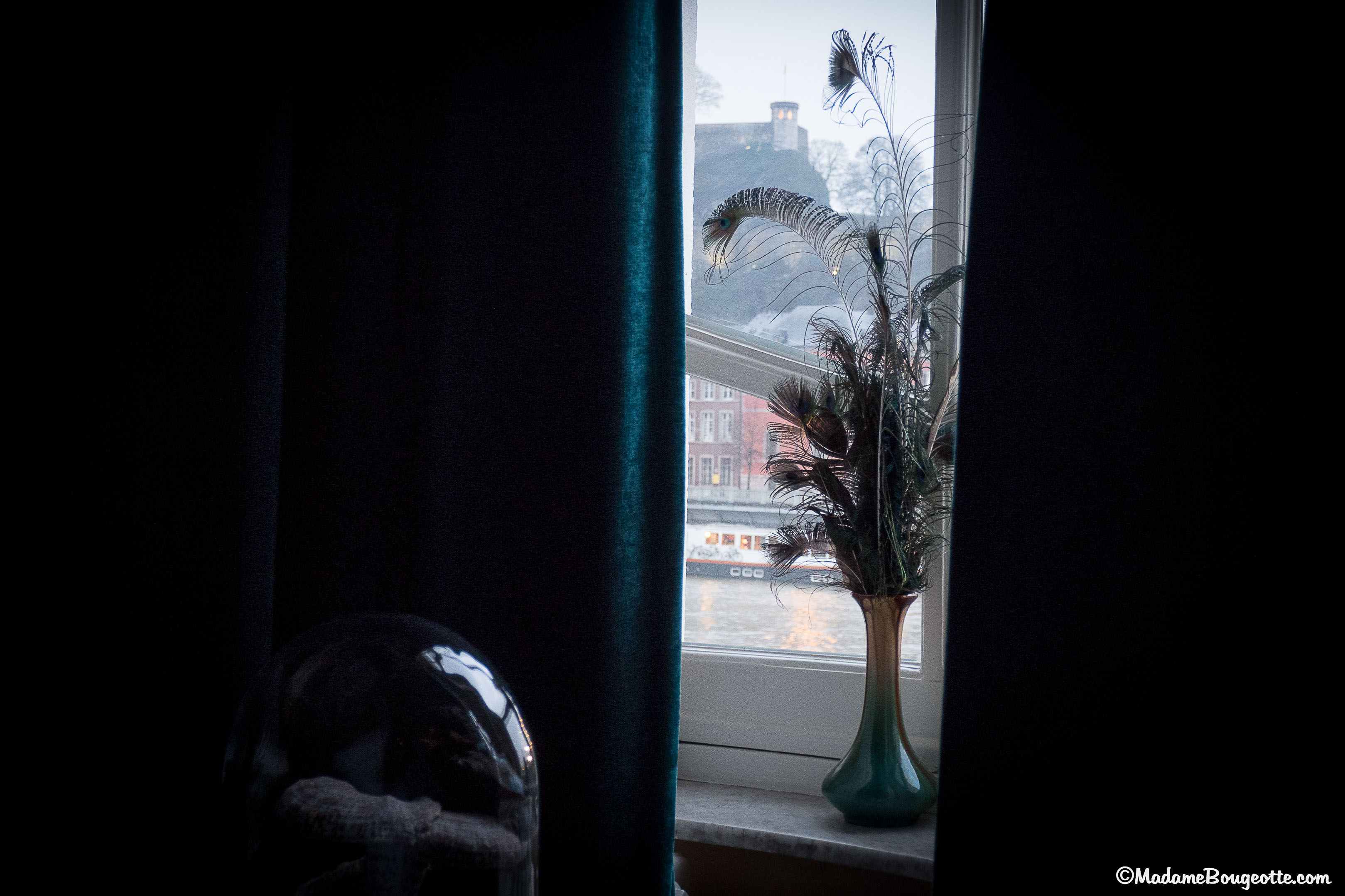 Lors de mon séjour, j’étais dans la suite Alphonse Balat, l’architecte de la demeure. C’est un endroit enchanteur. Une grande baignoire trône au milieu de la salle de bain. Depuis la terrasse couverte, nous avons une vue splendide sur la Meuse, la citadelle et la ville.